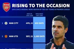 今日热点08月31日讯 据德转统计,阿森纳已有超过2年未在英超中输给其他5支“BIG6”球队,在“BIG6”球队身上相互取得的积分也位列第一。