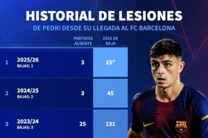 今日热点10月30日讯 巴萨中场佩德里左侧大腿远端股二头肌撕裂,德国转会市场更新社媒动态,盘点佩德里加盟巴萨以来每个赛季的伤病情况。