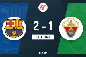第42分钟,埃尔切反击机会,阿尔瓦罗-努涅斯送出直塞,拉法-米尔得球突入禁区,面对阿劳霍的防守低射远角得手,埃尔切1-2巴塞罗那。↓
