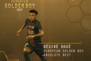 今日热点11月04日讯 金童奖官方宣布,20岁的巴黎前锋杜埃荣膺2025年金童奖,击败了居莱尔、赫伊森、库巴西等候选球员。