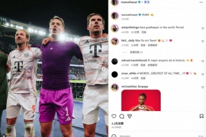 今日热点11月5日讯 拜仁在本轮欧冠焦点战2-1力克巴黎,诺伊尔在赛后通过社媒庆祝胜利。
