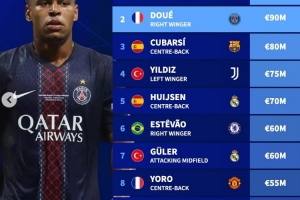 今日热点11月5日讯 杜埃荣膺2025年金童奖,德转也盘点了足坛U20球员身价榜,具体如下: