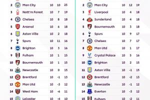 今日热点11月06日讯 英超官方社媒更新动态,官方晒出了24/25赛季和本赛季联赛在10轮过后的积分榜情况,并配文:你注意到了什么?