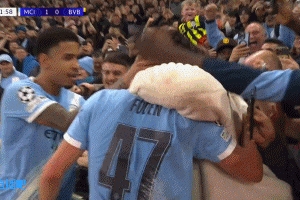 今日热点11月06日讯 欧冠联赛阶段第4轮曼城vs多特第22分钟,福登进球后跑到角旗区庆祝,有球迷搂着他自拍了一张,福登还看镜头笑的特别配合。