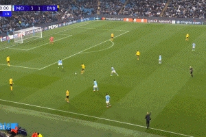 今日热点11月06日讯 欧冠联赛阶段第4轮曼城vs多特第91分钟,谢尔基突破至禁区后起脚射门,皮球折射入网!曼城4-1多特蒙德!