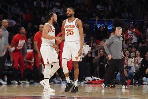 上半场尼克斯54-58落后于森林狼,但第三节尼克斯全员苏醒,布伦森(12分)、阿努诺比、唐斯、米罗、哈特等齐齐发力,单节轰出一波40-28的攻击波,一举反超比分。