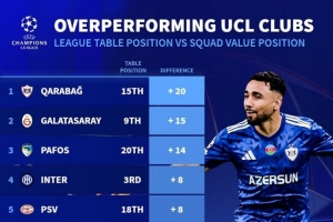 今日热点11月6日讯 德国转会市场根据球队目前欧冠排名与阵容身价排名的差异,列出本赛季欧冠表现超出预期球队榜单,卡拉巴赫居首。