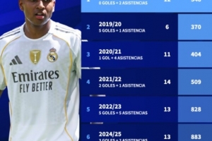 今日热点11月8日讯 尽管皇马主帅阿隆索多次在新闻发布会上强调罗德里戈是球队阵中重要一员,但数据却显示了完全不同的情况。在进攻端,只有恩德里克和贡萨洛-加西亚比他出场时间更少。事实上,这是他加盟皇马以来前15场比赛出场时间最少的一个赛季。