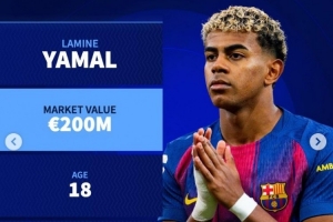 今日热点11月9日讯 《转会市场》统计了16岁到25岁的各年龄最高身价情况,18岁亚马尔2亿欧居首。