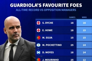 今日热点11月10日讯 曼城在本轮英超焦点战3-0完胜利物浦,瓜帅也取得了执教生涯对阵斯洛特的首胜。《转会市场》也列出了瓜帅执教生涯对阵教练的胜场最多榜。