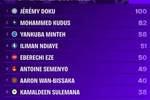 今日热点11月10日讯 英超第11轮比赛,多库完成7次过人,打进1球,帮助曼城3-0击败利物浦。据Squawka统计,多库是2025年首位英超成功过人达到100次的球员。