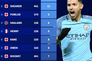 今日热点11月10日讯 德转盘点了英超历史上上演帽子戏法次数榜,其中阿圭罗12次居首,哈兰德8次第四,具体如下: