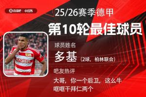 第十轮评选结果结出炉,柏林联合中卫多基梅开二度,帮助球队2-2战平拜仁,终结后者开局16连胜纪录,当选【今日热点X小红书德甲第10轮最佳球员】!
