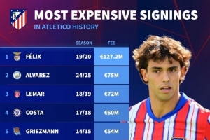 今日热点11月12日讯 阿波罗体育资本斥资13亿欧元收购马竞俱乐部55%股份,并承诺未来几年再投资约13亿欧元,德国转会市场统计了马竞队史引援的费用,并列出最贵引援排名。