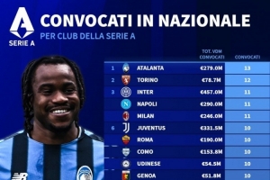 今日热点11月12日讯 德国转会市场统计了意甲各队被国家队征召球员的数量,并列出榜单,亚特兰大13人居首,都灵12人次席。