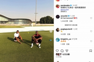 今日热点11月14日讯 法国球星博格巴更新社媒,晒出与法蒂一起的训练照。