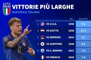 今日热点11月14日讯 北京时间11月17日凌晨,意大利将在世预赛最后一轮比赛中主场对阵挪威,意大利此役需要至少净胜挪威9球,才能直接出线。德国转会市场列出了意大利队史最大比分胜利榜单。