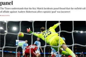 今日热点11月14日讯 英媒《泰晤士报》报道,英超专家组已经裁定,上轮英超范戴克对曼城的进球应被判有效。