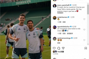 今日热点11月15日讯 阿根廷新晋国脚帕尼切利更新社媒动态,晒出与梅西的合照。