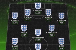 今日热点11月17日讯 英格兰在世预赛中8战全胜,打进22球且0失球,强势进军美加墨世界杯。WhoScored评选出英格兰世预赛最高评分阵容,其中凯恩、赖斯、萨卡评分前三。