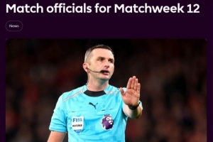 今日热点11月18日讯 英超官方公布联赛第12轮各场执法裁判,迈克尔-奥利弗将执法阿森纳vs热刺。