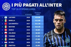 今日热点11月18日讯 德国转会市场统计了国米球员的税前年薪,并列出榜单,劳塔罗1660万欧居首,巴雷拉、恰尔汗奥卢二三位。
