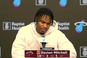 今日热点11月18日讯 NBA常规赛,热火115-113险胜尼克斯。赛后,戴维恩·米切尔接受了采访。