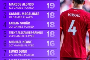 今日热点11月19日讯 利物浦后卫范戴克有着不错的得分能力,头球轰炸是他的强项。德国转会市场盘点了2017-18赛季以来英超后卫进球情况,范戴克以21球居首。