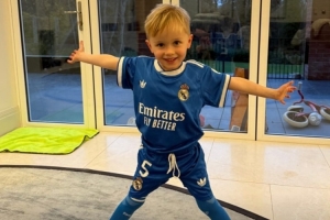 今日热点11月19日讯 热刺中场麦迪逊在今日通过社媒晒出自己儿子的动态,后者穿上了贝林厄姆在皇马的5号球衣。
