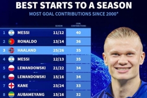 今日热点11月19日讯 哈兰德在本赛季表现抢眼,数据统计显示他各项赛事为俱乐部和国家队已经直接参与35球,《转会市场》统计显示这也是新世纪单赛季同期参与进球第三多的纪录。
