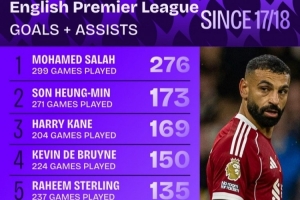 今日热点11月19日讯 数据机构squakwa统计了17-18赛季以来的英超直接参与进球榜,萨拉赫断崖领跑。