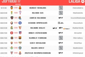 今日热点11月19日讯 西甲第17轮各场开球时间公布,12月21日4点皇马vs塞维利亚,23:15比利亚雷亚尔vs巴萨。