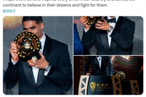 今日热点11月20日讯 阿什拉夫当选2025年非洲足球先生,他在社交媒体上晒出领奖照片,发表获奖感言。