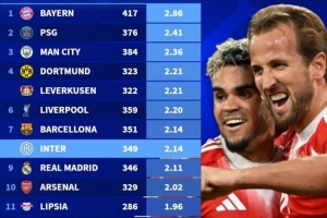 今日热点11月20日讯 德国转会市场统计了近5年球队在五大联赛中的场均进球数量,并列出榜单,拜仁2.86球居首,巴黎、曼城二三位。