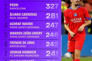 今日热点11月21日讯 数据显示,维蒂尼亚的进攻三区完成传球次数位列五大联赛第一。