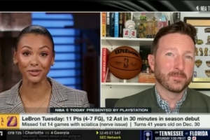 今日热点11月22日讯 今天的《NBA Today》节目,主持人Malika Andrews连线了自己的老公、湖人随队记者Dave McMenamin,聊到了詹姆斯复出后的安排。