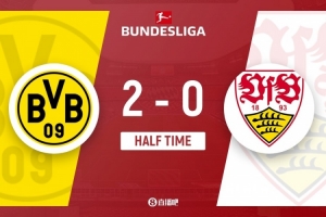今日热点11月22日讯 北京时间11月22日晚上22:30,德甲第11轮,多特蒙德坐镇伊杜纳信号公园球场迎战斯图加特。上半场,埃姆雷·詹点射,拜尔补射。半场战罢,多特2-0斯图加特。