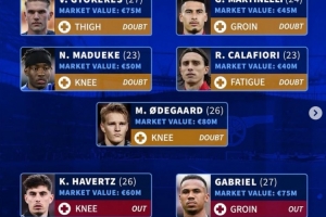 今日热点11月23日讯 阿森纳将在本轮英超焦点战对阵热刺,《转会市场》统计显示队内最多可能有8人无法出战。