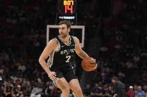 上半场比赛,马刺中锋科内特发挥不错,内线攻防在线,首发出战14分钟,3中3,罚球2中2拿到8分4篮板1助攻1盖帽,正负值+12。